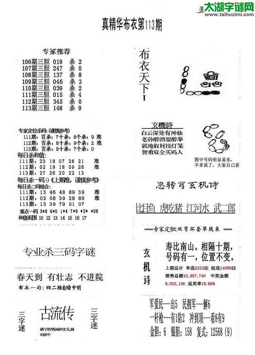 3d17113期:好心人布衣天下图谜
