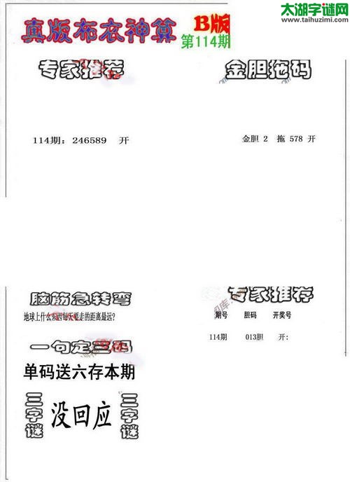 3d17114期:真版布衣神算AB版图库