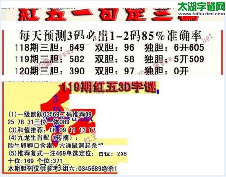 3d120期:红五图库总汇(一句定三码)