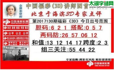 于海滨专家点评2017130期福彩3d图谜:胆码621,搭配057