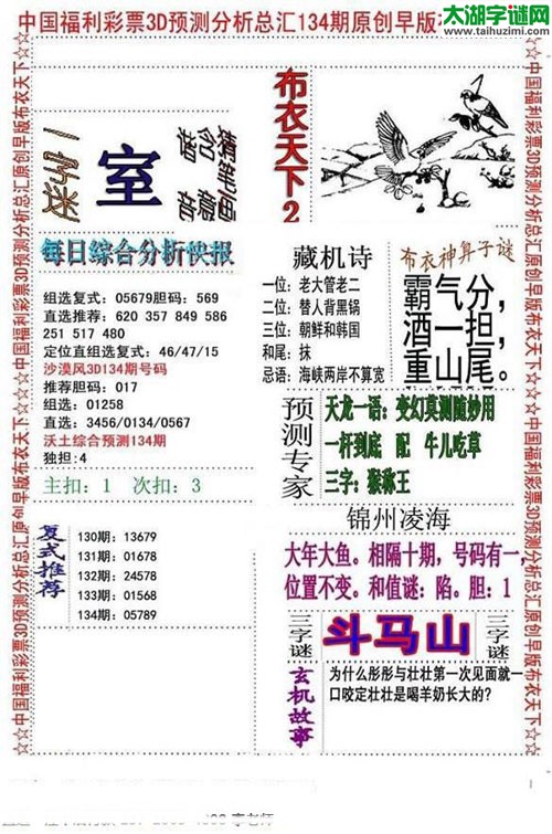 3d17134期:早版布衣天下图谜