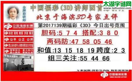 于海滨点评2017139期3d图谜:胆码574,搭配380