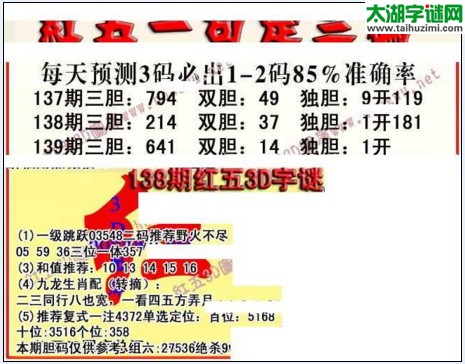 3d139期:红五图库总汇(一句定三码)