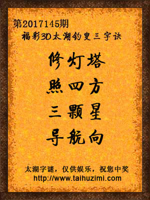 2017年福彩3d第145期太湖钓叟字谜:修灯塔,照四方,三颗星,导航向