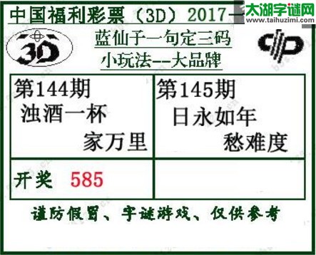 3d145期:蓝仙子一句定三码(日永如年 愁难度)
