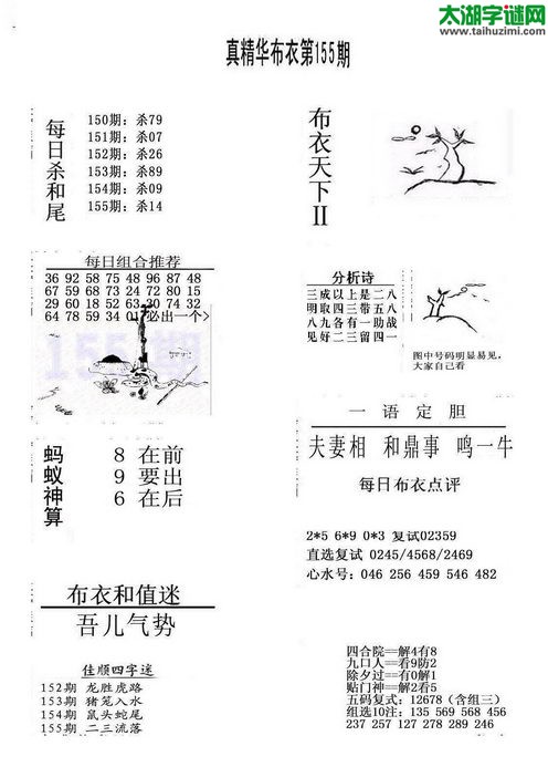 3d17155期:福彩3D字谜汇总