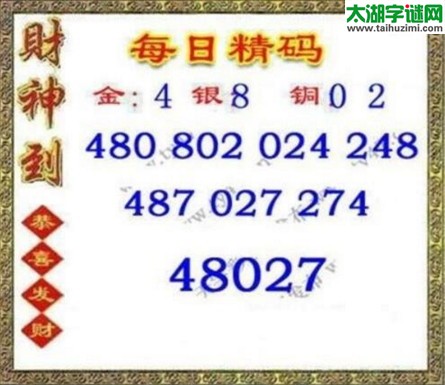 每日精码2017158期3d图谜:金胆4,银胆8,铜胆02,复式48027