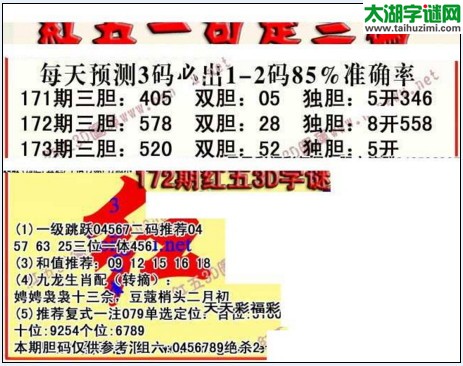 3d173期:红五图库总汇(一句定三码)