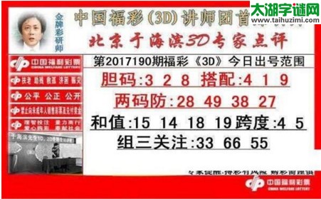 于海滨专家点评2017190期3d图谜:胆码328,搭配419,两码:28 49 38 27,和值15 14 18 19