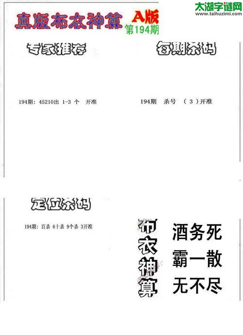 3d17194期:真版布衣神算AB版图库