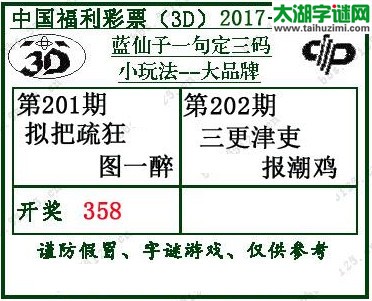 蓝仙子一句定三码第2017202期3D图谜:三更津吏 报潮鸡