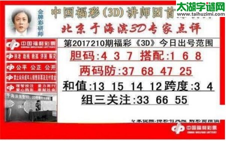 于海滨专家点评2017210期3d图谜:胆码437,搭配168