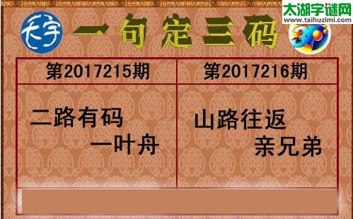 216期【天宇】多字和值谜-定三码:山路往返--亲兄弟,胆码89,杀号67