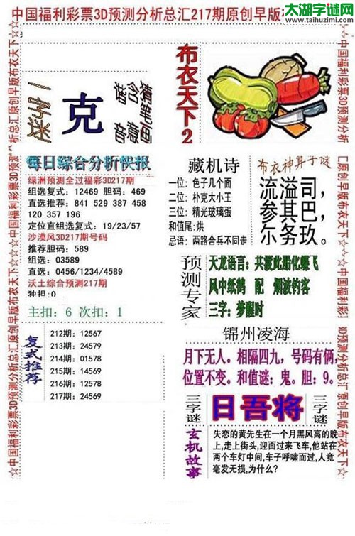 3d17217期:早版布衣天下图谜