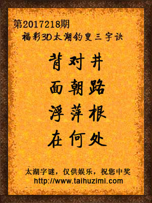 2017年福彩3d第218期太湖钓叟字谜:背对井,面朝路,浮萍根,在何处