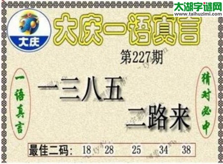 大庆黑胆王2017227期一语真言:一三八五--二路来,必买6,必吃8