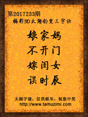 2017年福彩3d第233期太湖钓叟字谜:娘家妈,不开门,嫁闺女,误时辰