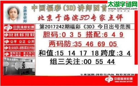 于海滨专家点评2017242期3d图谜:胆码035,搭配649