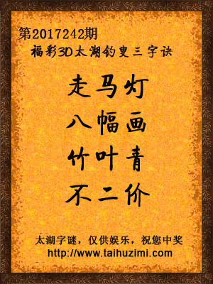 2017年福彩3d第242期太湖钓叟字谜:走马灯,八幅画,竹叶青,不二价