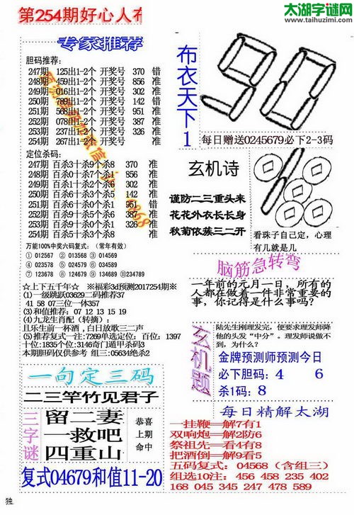 3d17254期:好心人布衣天下图谜