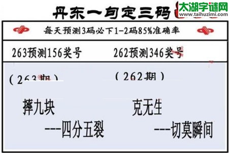 福彩3d第17263期丹东一句定三码:摔九块--四分五裂,预测号156