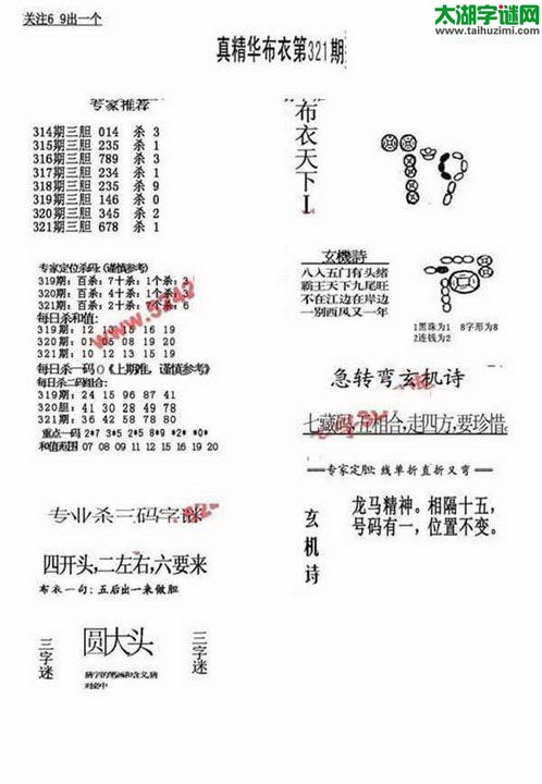 3d17321期:福彩3D字谜汇总