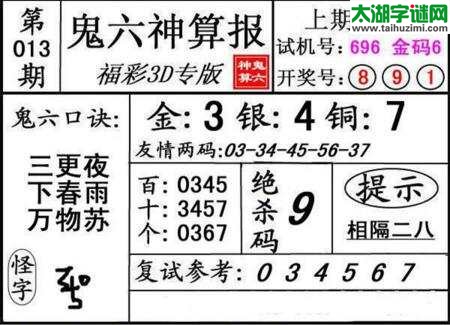 阿凡提2018年3D013期:精准杀号推荐{3错0}