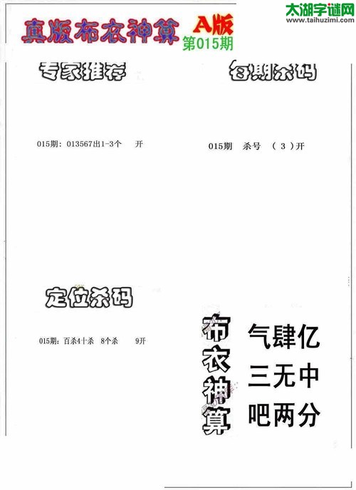 光芒万丈解18年015期:3d太湖钓叟三字诀