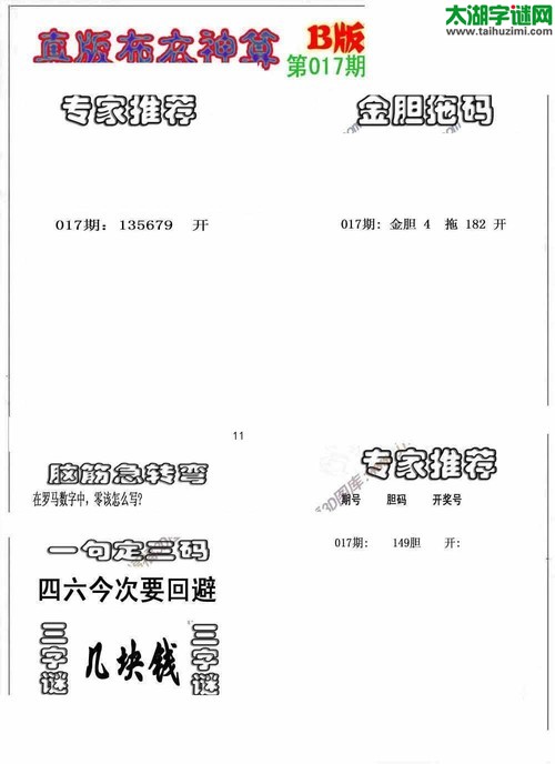 3d18017期:真版布衣神算AB版图库