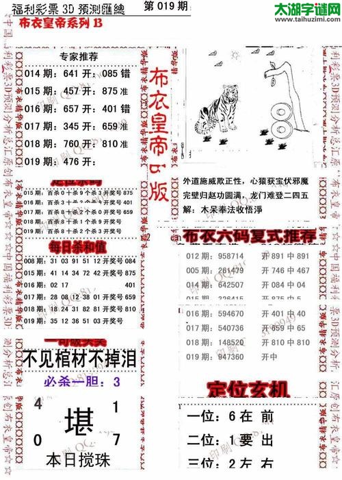 江夏丰彩2019年3D018期:福彩杀一码期期准