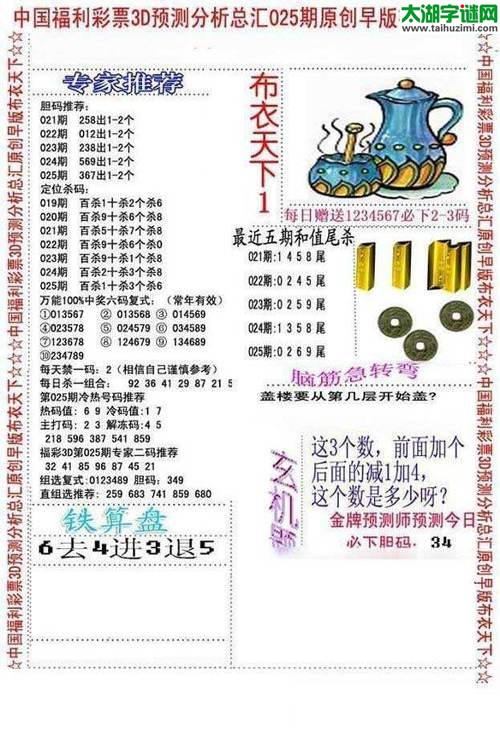 3d18025期:早版布衣天下图谜
