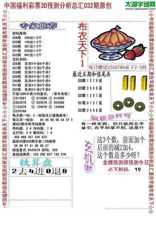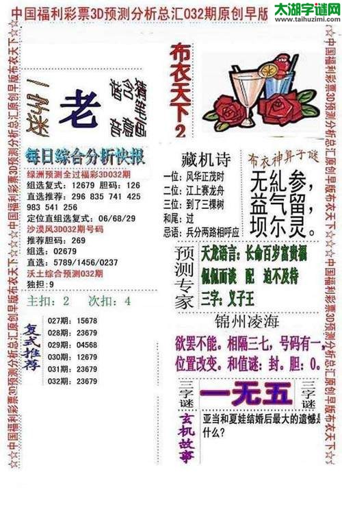 瓦力烘解福彩3D032期:太湖钓叟字谜