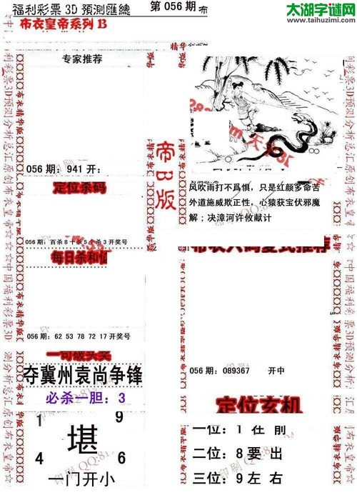 光芒万丈解18年056期:3d太湖钓叟三字诀