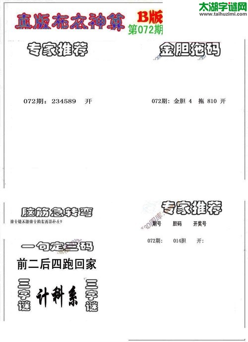 神笔马良2018年3D072期:3d绝杀一码+2尾