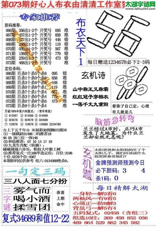 3d18073期:好心人布衣天下图谜