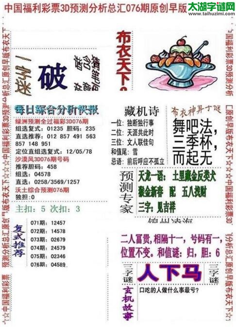 3d18076期:早版布衣天下图谜