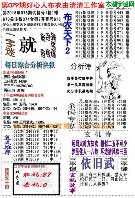 3d18079期:好心人布衣天下图谜