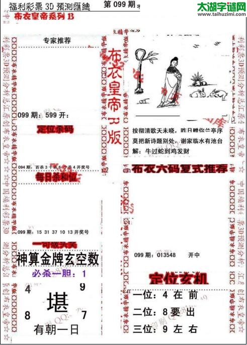 江夏丰彩2018年3D099期:福彩杀一码期期准