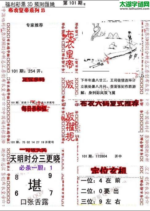 光芒万丈解18年102期:3d太湖钓叟三字诀