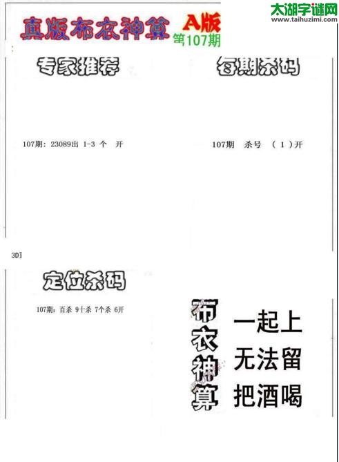 3d18107期:真版布衣神算AB版图库