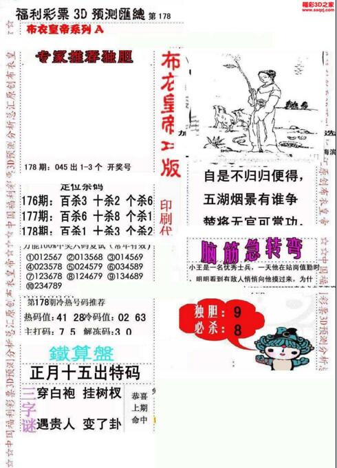 江夏丰彩2018年3D178期:福彩杀一码期期准