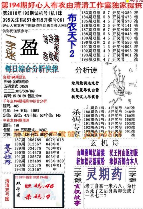 3d18194期:福彩3D字谜汇总