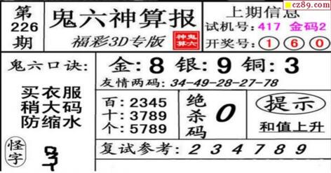 3d226期:鬼六神算图库福彩3d胆码图