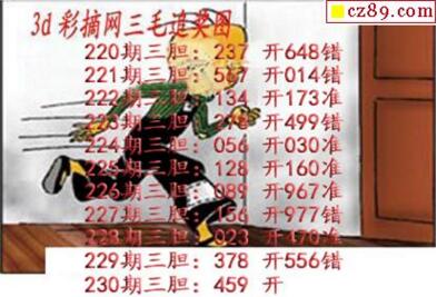 3d230期:铁人铁胆推荐胆码图
