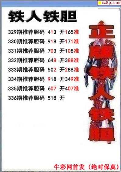 3d336期:铁人铁胆推荐胆码图