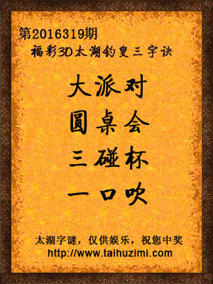 2016年福彩3d第319期太湖钓叟字谜:大派对,圆桌会,三碰杯,一口吹