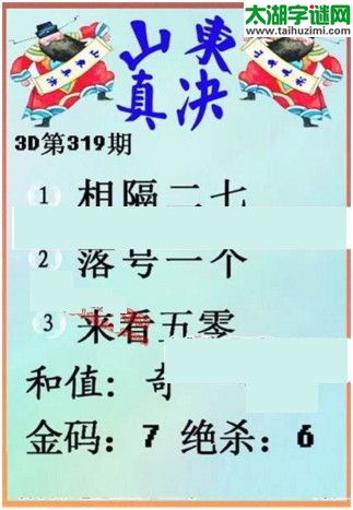 3d319期:天宇图谜(胆码杀号+必买五码)