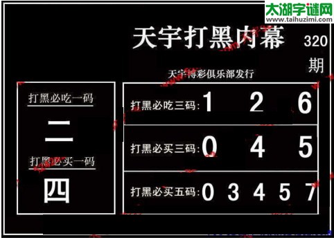 3d320期:天宇图谜(胆码杀号+必买五码)