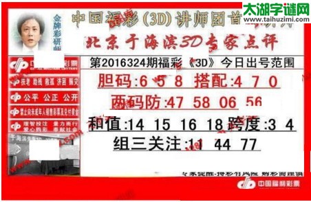 【大家共赢】福彩3d第2016324期预测号码