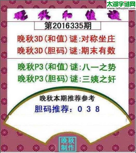 2016335期3D晚秋(和值)谜:对称坐庄 D:期末有数